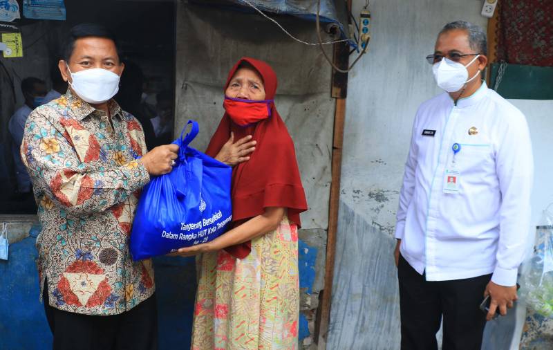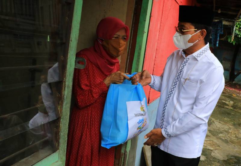 Wali Kota Tangerang H. Arief R. Wismansyah berkesempatan membagikan langsung paket sembako untuk warga di Kecamatan Karawaci.