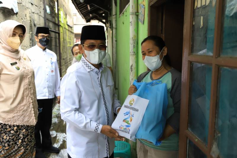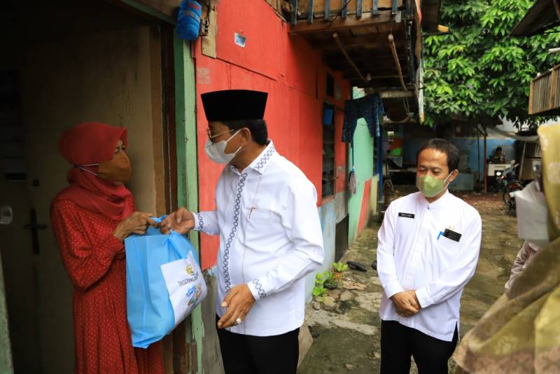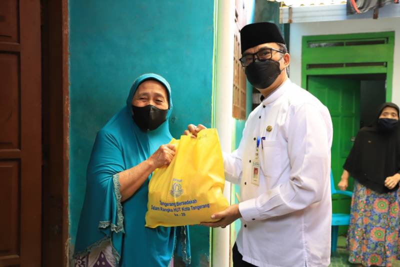 Para kepala OPD hingga pegawai Pemkot Tangerang membagikan langsung paket sembako, ke warga secara door to door. Salah satunya, Dinas Komunikasi dan Informatika (Diskominfo) yang kebagian di wilayah Kelurahan Batuceper, Kecamatan Batuceper, Jumat (25/2/22).