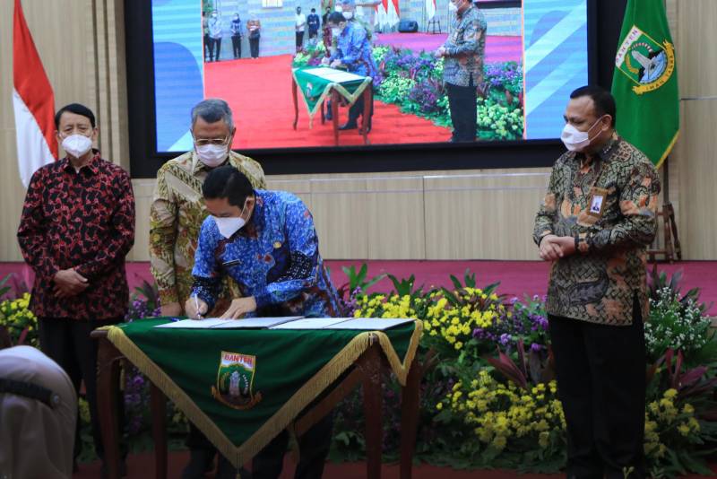 Sementara itu, Ketua KPK RI Firli Bahuri dalam kesempatan tersebut mengungkapkan apresiasinya kepada pemerintah daerah di Provinsi Banten dalam upaya mengantisipasi terjadinya tindak korupsi, yang ditandai dengan capaian MCP di atas rata - rata nasional.