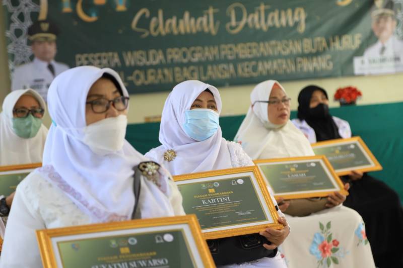 Tepat Pada perayaan HUT Kota Tangerang ke-29, Kecamatan Pinang menggelar Wisuda Jamaah Buta Huruf Al Quran pada 66 lansia yang berhasil khatam Iqro. Para jamaah diwisuda langsung oleh Walikota Tangerang, Arief R Wismansya, yang hadir melalui virtual zoom, Senin (28/2/22).