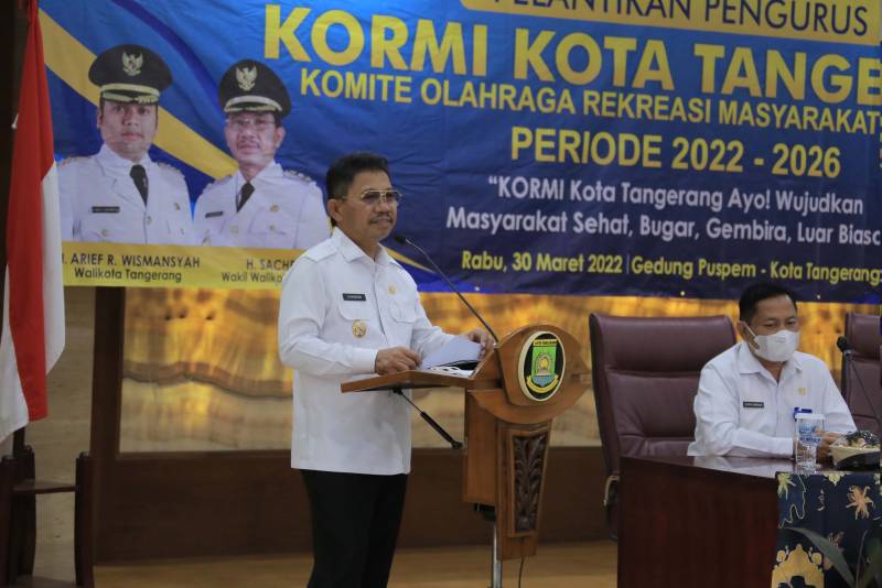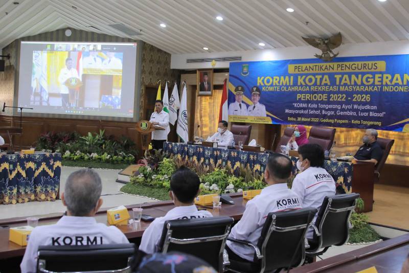 Wakil Wali Kota Tangerang H. Sachrudin didampingi oleh Sekretaris Daerah Kota Tangerang Herman Suwarman menghadiri acara pelantikan Pengurus Komite Olahraga Rekreasi Masyarakat Indonesia (Kormi) Kota Tangerang periode 2022-2026 di Akhlakul Karimah Gedung Pusat Pemerintahan Kota Tangerang, Rabu (30/3).
