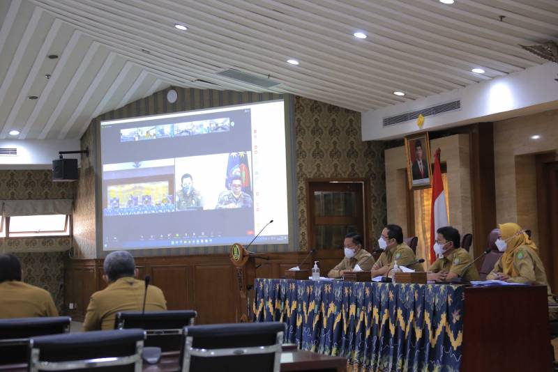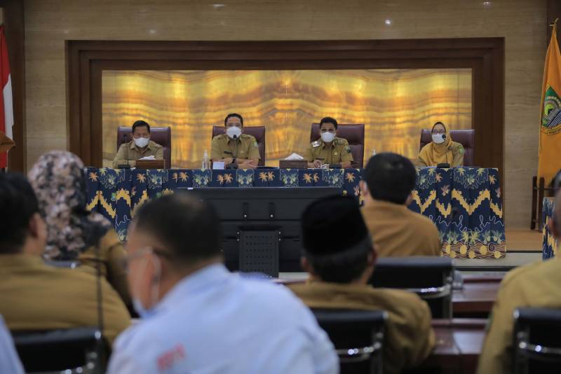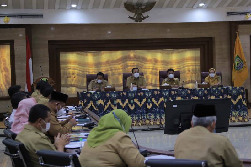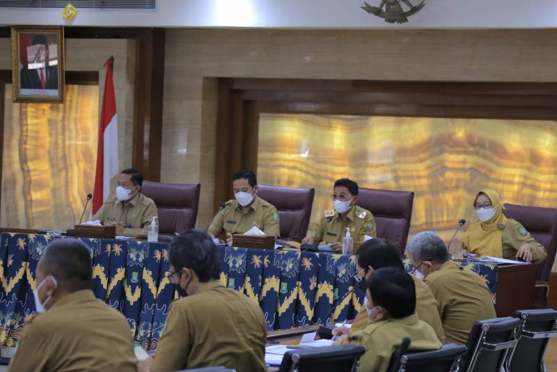 Wali Kota Tangerang H. Arief R. Wismansyah didampingi Wakil Wali Kota H. Sachrudin memimpin langsung rapat yang digelar secara hybrid dengan peserta yang merupakan pejabat mulai dari esselon II hingga esselon IV di setiap OPD Pemkot Tangerang.