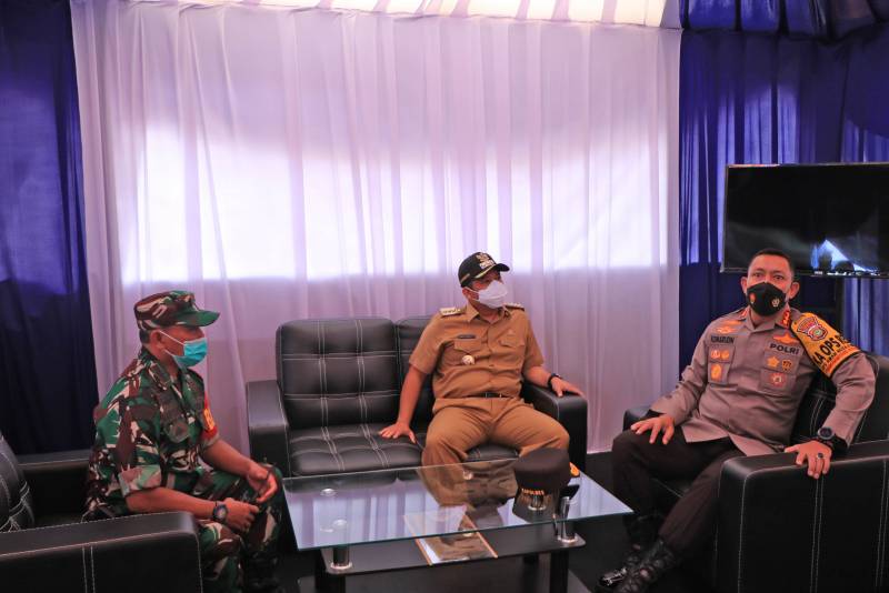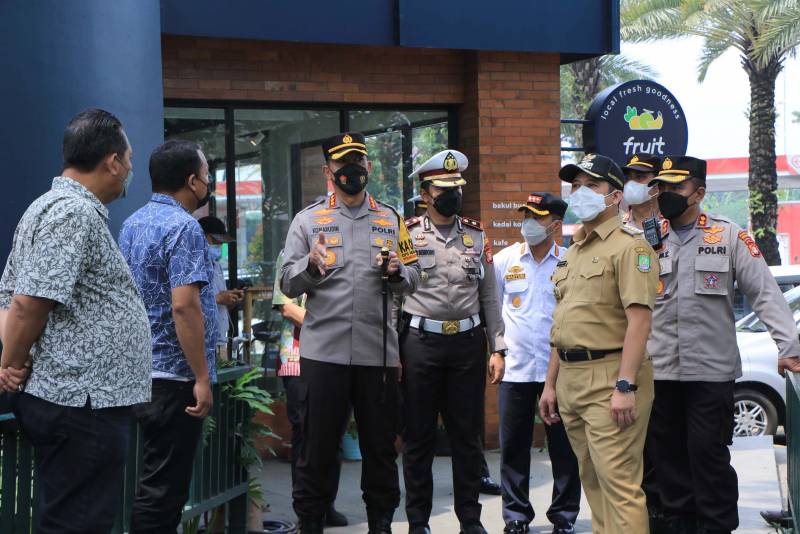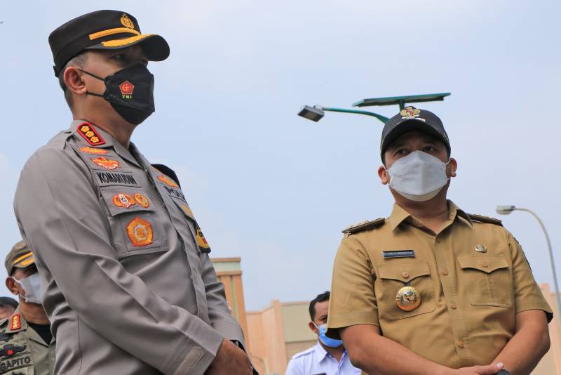 Wali Kota Tangerang H. Arief R. Wismansyah bersama dengan Kapolres Metro Tangerang Kota Komarudin meninjau sejumlah lokasi yang menjadi titik pendirian pos - pos pengamanan lebaran tahun 2022.