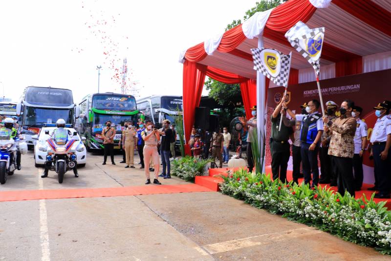 Wali Kota Tangerang H. Arief R. Wismansyah melepas rombongan peserta mudik gratis yang diselenggarakan oleh Direktorat Jenderal Angkutan Darat Kementerian Perhubungan.