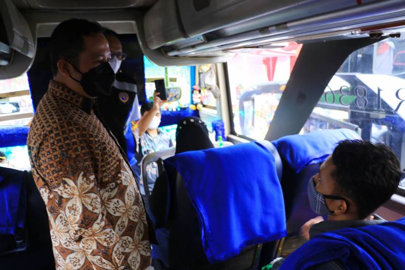 Arief juga berkesempatan menyapa dan berdialog dengan sejumlah peserta mudik gratis di salah satu bus yang akan menuju daerah Solo, Jawa Tengah serta memimpin doa agar seluruh pemudik diberikan keselamatan dalam perjalanan.
