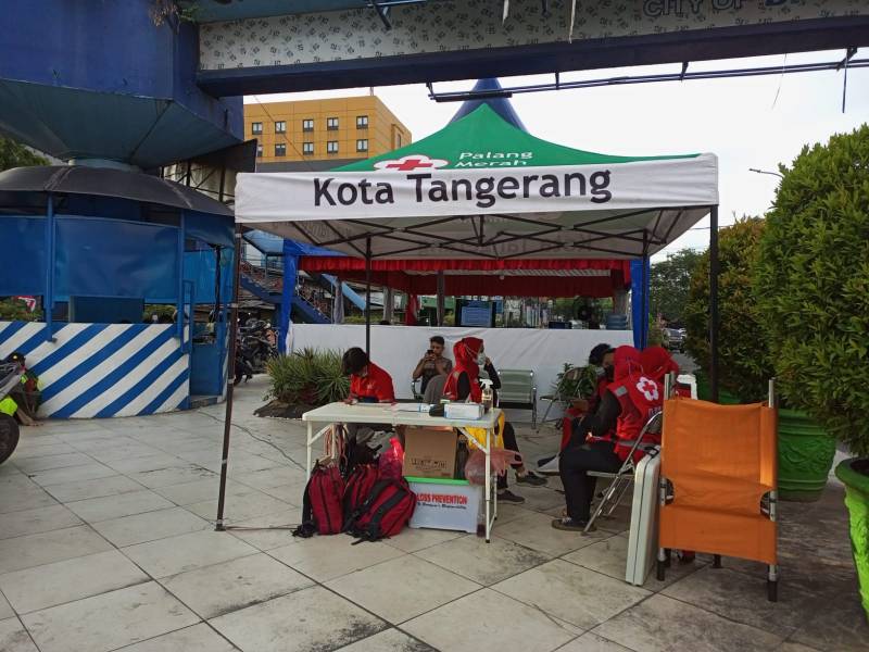 Jelang Hari Raya Idul Fitri 2022, PMI Kota Tangerang Membuka Posko pelayanan kesehatan di jalur mudik yang terbagi 2 kloter di setiap harinya untuk membantu instansi pemerintah maupun pihak keamanan dalam melakukan pemantauan arus mudik di wilayah Kota Tangerang Jum'at (29/04/22).