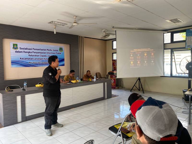 Memperluas informasi publik lewat sosial media. Kelurahan Cipadu Jaya, Kecamatan Larangan menggelar Sosialisasi Pemanfaatan Media Sosial, yang diikuti para anggota humas tingkat RW di delapan RW Kelurahan Cipadu, di Kantor Kelurahan Cipadu Jaya, Senin (23/5/22).