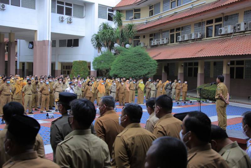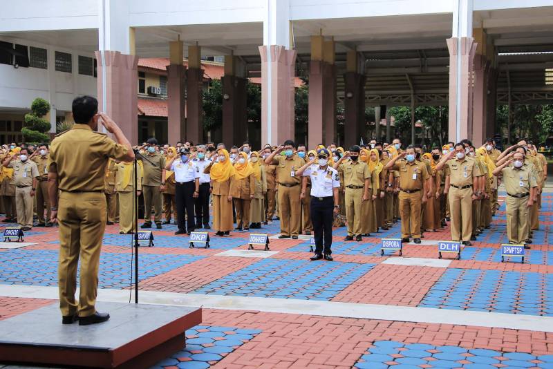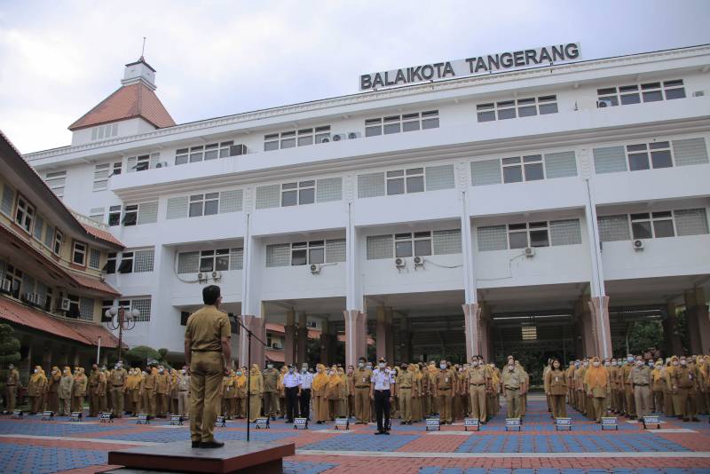 Mengawali hari jelang tutup bulan Mei 2022, Wakil Wali Kota Tangerang H. Sachrudin memimpin apel pagi yang dihadiri oleh seluruh Pejabat Tinggi Pratama, Koordinator, dan Sub Koordinator di lingkup Pemerintah Kota Tangerang, Senin (30/5/22).