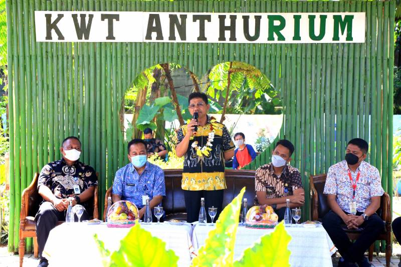 Wakil Wali Kota Tangerang H. Sachrudin didampingi Camat Karawaci Mahdiar serta Perwakilan Management Alfamart Dimas Wahyu Putera meresmikan secara langsung Rumah Bibit dan Magot Anthurium-Alfamart di Kelurahan Nambo Jaya Kecamatan Karawaci, Kamis (2/6/22).
