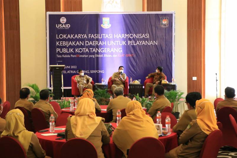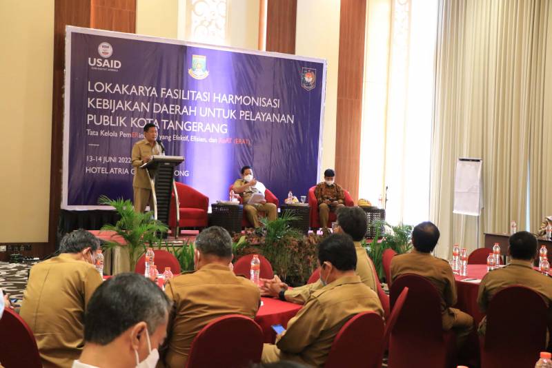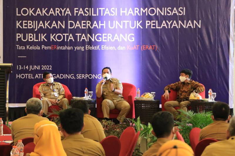 Pemerintah Kota Tangerang menggelar kegiatan Lokakarya Fasilitasi Harmonisasi Kebijakan Daerah Untuk Pelayanan Publik Kota Tangerang yang menjadi kerjasama dengan USAID Erat Banten dengan peserta seluruh kepala Organisasi Perangkat Daerah (OPD) Pemkot Tangerang dan berlangsung selama dua hari mulai 13 hingga 14 Juni 2022.