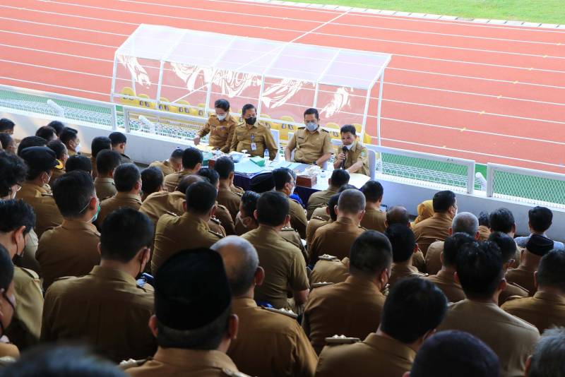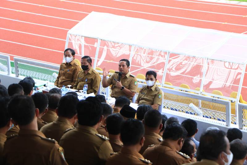 Wali Kota Tangerang H. Arief R. Wismansyah memimpin langsung rapat evaluasi didampingi Wakilnya H. Sachrudin yang diikuti oleh seluruh pejabat tinggi pratama, Camat dan Lurah se-Kota Tangerang.