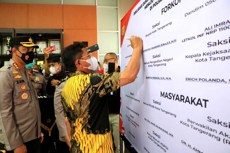 Wakil Wali Kota Tangerang H. Sachrudin hadir dalam Deklarasi Dukungan Penguatan Pembangunan Zona Integritas berlokasi di Aula Polres Metro Tangerang Kota, Kamis (16/06).