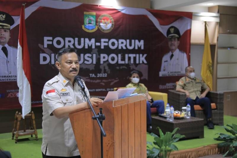 Sementara itu, Kepala Badan Kesbangpol Irman Pujahendra yang turut hadir dalam kesempatan tersebut menjelaskan acara Forum Diskusi Politik bertujuan untuk meningkatkan pengetahuan kepada pengurus partai politik terkait kebijakan - kebijakan pemerintah di bidang politik dan terbentuknya kesadaran pengurus partai politik akan pentingnya memahami pengetahuan tentang politik