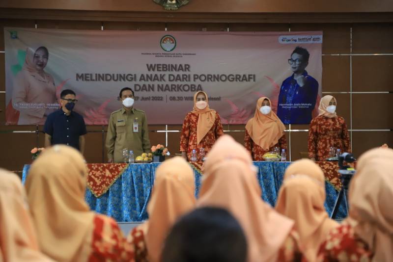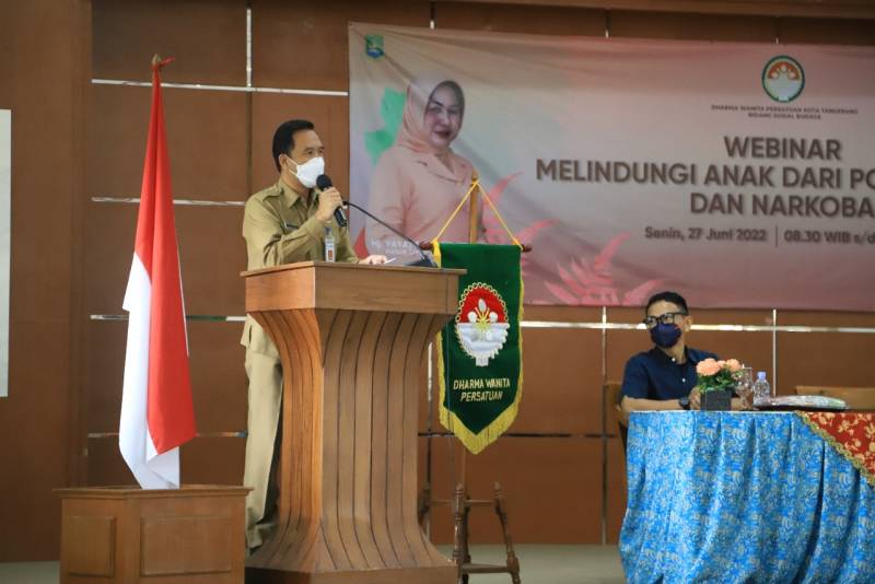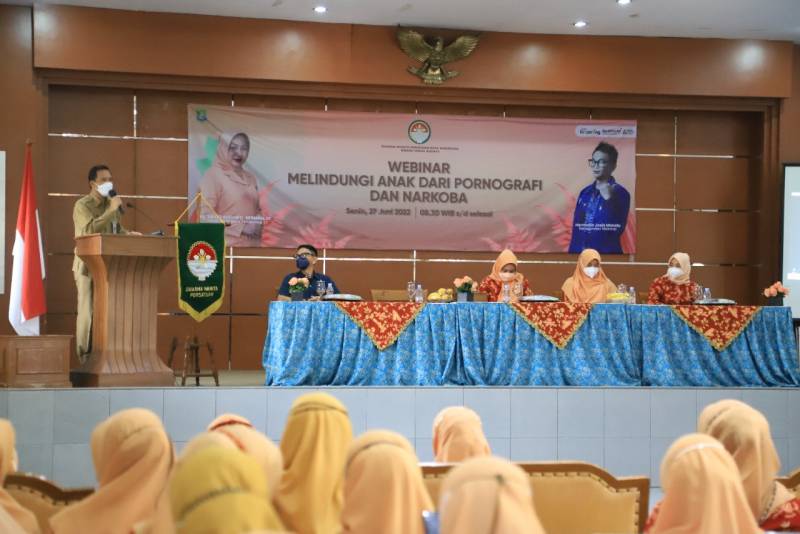 Bentuk pencegahan dampak negatif dari penggunaaan internet pada anak, Dharma Wanita Persatuan (DWP) Kota Tangerang menggelar webinar dengan mengusung tema “Melindungi Anak dari Pornografi dan Narkoba”, yang digelar secara hybrid, di Gedung Nyimas Melati, Senin (27/6/22).