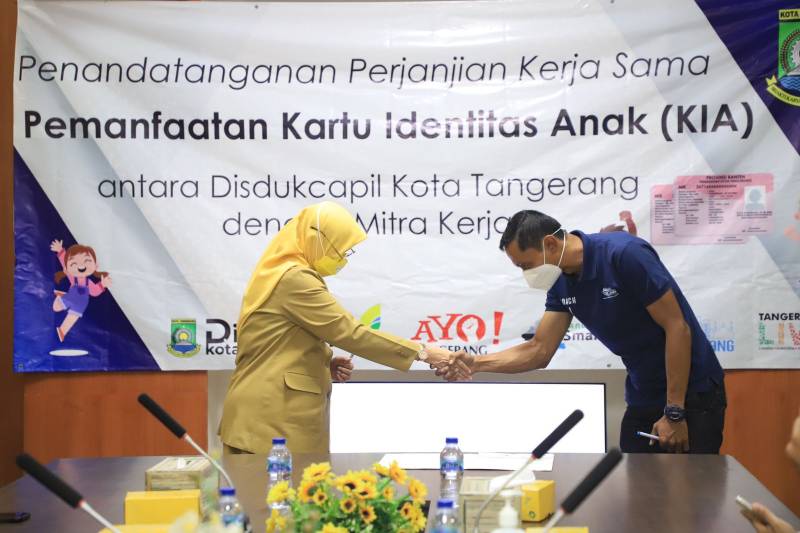 "Hari ini, kami menandatangani Perjanjian Kerja Sama Pemanfaatan Kartu Identitas Anak (KIA) dengan empat merchant yang ada di Kota Tangerang. Nantinya, akan diberikan diskon untuk anak yang memiliki KIA ketika mengunjungi empat merchant tersebut," ungkap Kepala Disdukcapil Rina Hernaningsih.