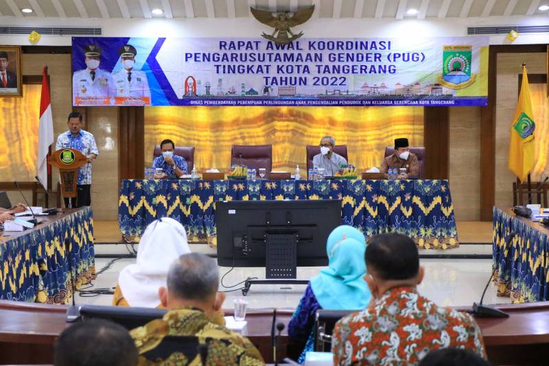 Sekretaris Daerah Kota Tangerang Herman Suwarman didampingi Kepala Dinas Pemberdayaan Perempuan, Perlindungan Anak, Pengendalian Penduduk dan Keluarga Berencana (P3A2PKB) Kota Tangerang Jatmiko hadir membuka kegiatan Rapat Koordinasi Awal Pengarustamaan Gender (PUG) yang dilaksanakan di Ruang Akhlakul Karimah Gedung Pusat Pemerintahan Kota Tangerang, Kamis (30/6/22).