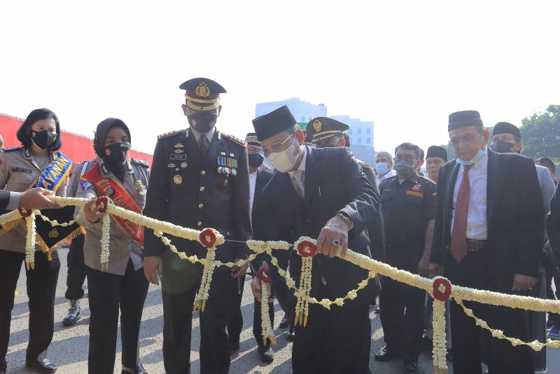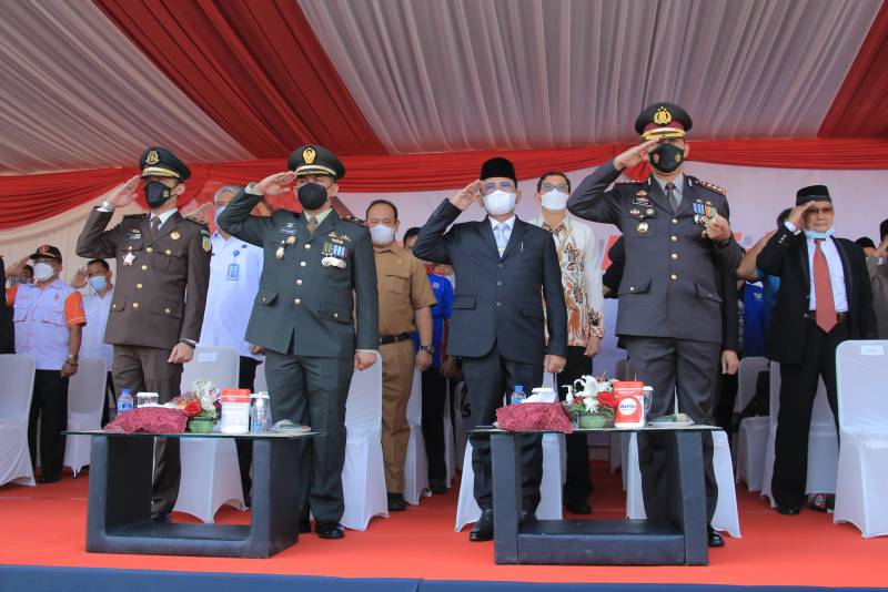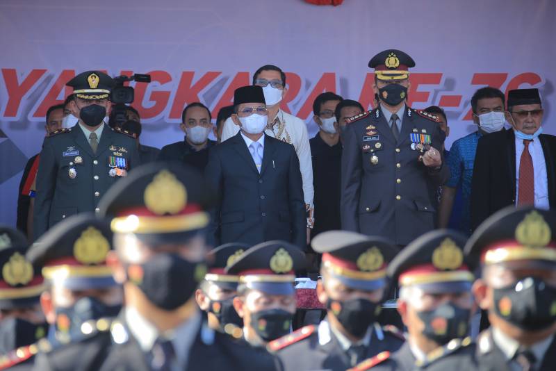 Wakil Wali Kota Tangerang H. Sachrudin bersama Kapolres Metro Tangerang Kota Zain Dwi Nugroho, menghadiri Upacara Peringatan Hari Bhayangkara Ke-76 bertempat di Lapangan Apel Polres Metro Tangerang Kota. Upacara dilakukan secara virtual dan dipimpin langsung oleh Bapak Presiden Republik Indonesia, Joko Widodo, selaku inspektur upacara.
