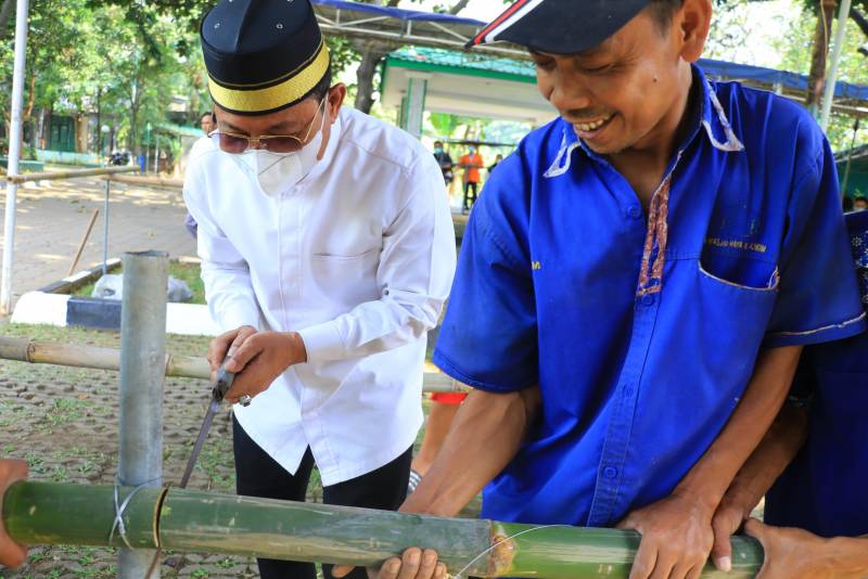 Wakil Wali Kota Tangerang H. Sachrudin meninjau langsung kesiapan tempat pemotongan hewan menjelang pelaksanaan salat id dan kurban di Masjid Raya Al Azhom, Jumat (08/07/2022).