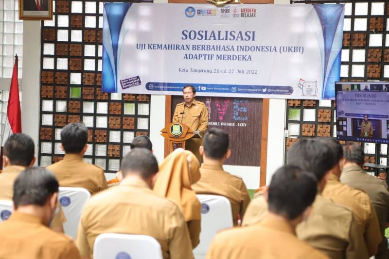 Kantor Bahasa Banten (KBB) berkolaborasi dengan Pemerintah Kota (Pemkot) Tangerang menggelar Uji Kemahiran Berbahasa Indonesia (UKBI) yang diikuti puluhan Aparatur Sipil Negara (ASN), di lingkup Pemkot Tangerang yang digelar di Pagio Puspem Tangerang, Selasa (26/7/22).