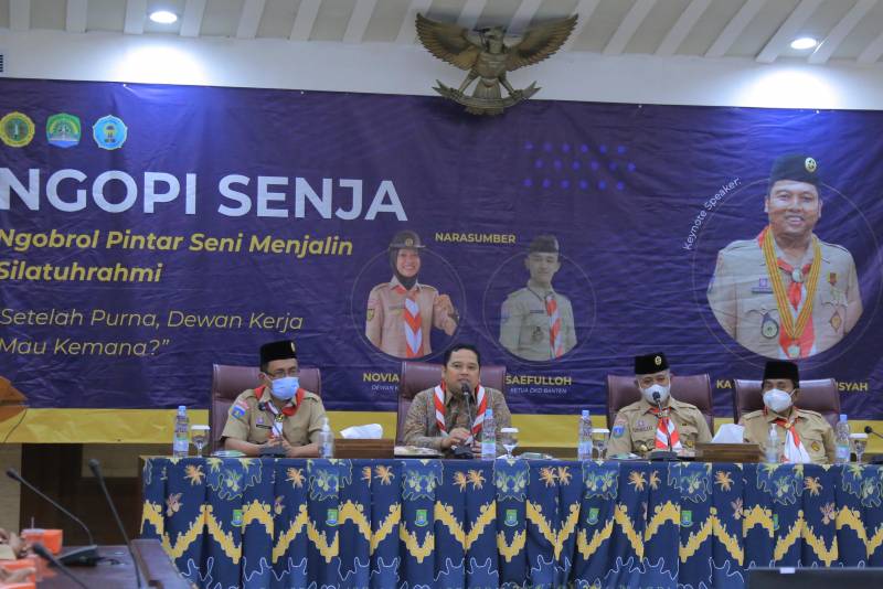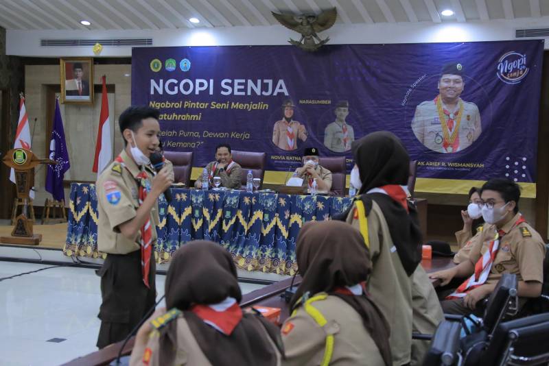 Wali Kota Tangerang H. Arief R Wismansyah menghadiri acara 'Ngobrol Pintar Seni Menjalin Silaturahmi' (Ngopi Senja) yang diselenggarakan oleh Praja Muda Karana (Pramuka) Kota Tangerang bertempat di Ruang Rapat Akhlakul Karimah Gedung Pusat Pemerintahan Kota Tangerang, Sabtu (30/07/2022)