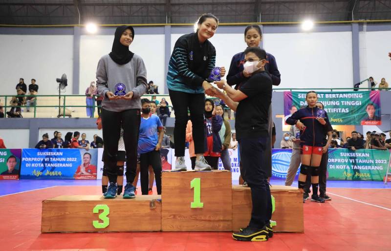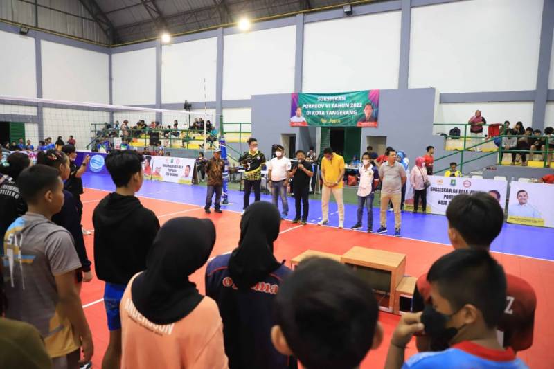 Wakil Wali Kota Tangerang H. Sachrudin didampingi Kepala Dinas Pemuda dan Olahraga (Dispora) Kota Tangerang, Kaonang, hadir secara langsung menyaksikan laga final dalam gelaran Kompetisi Bola Voli Indoor Antar Club Kota Tangerang bertempat di GOR Jatiuwung, Gandasari, Kota Tangerang, Minggu (31/07) malam.