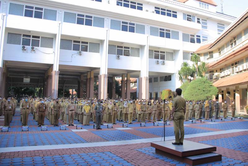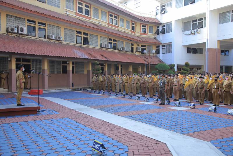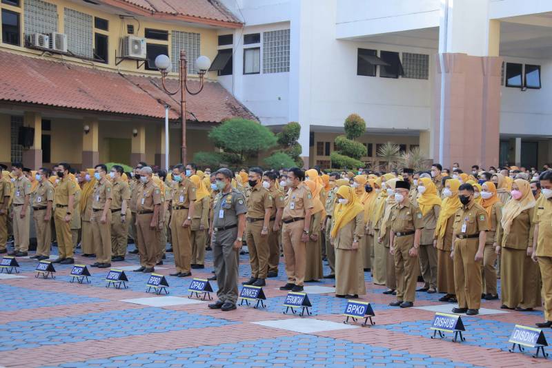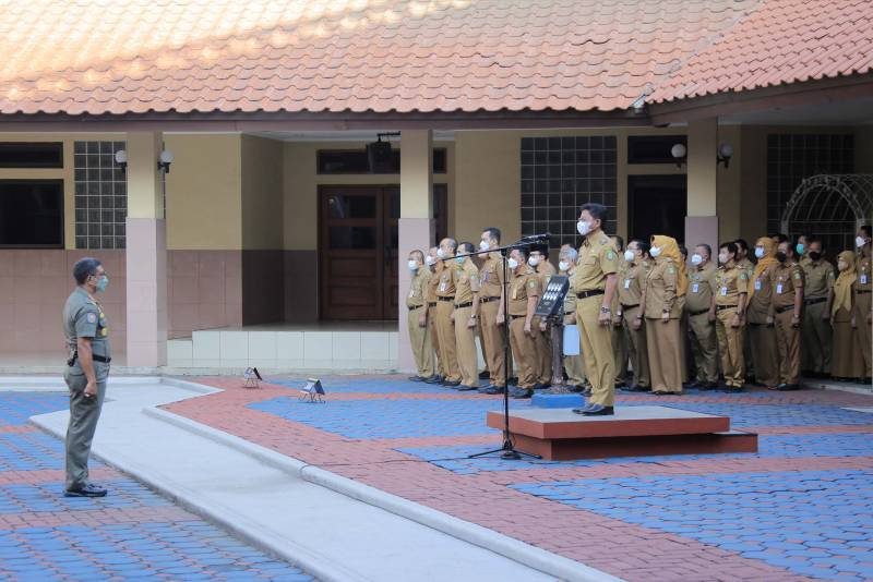 Memasuki Bulan Kemerdekaan Indonesia, Wakil Wali Kota Tangerang H. Sachrudin mengingatkan kepada seluruh jajaran pejabat dan pegawai Pemerintah Kota Tangerang untuk mengajak masyarakat menyemarakkan Hari Kemerdekaan Bangsa Indonesia ke-77 sebagai bentuk terima kasih kepada para pahlawan pada giat apel pagi di Plaza Pusat Pemerintah Kota Tangerang, Senin (1/8/2022).