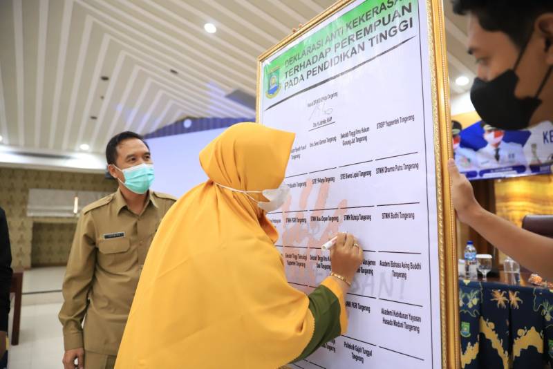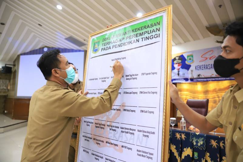 Memaksimalkan perlindungan akan kekerasan terhadap perempuan dan anak, Dinas Pemberdayaan Perempuan, Perlindungan Anak, Pengendalian Penduduk, dan Keluarga Berencana (DP3AP2KB) menggelar Sosialisasi dan Deklarasi Pencegahan Kekerasan Terhadap Perempuan dan Anak di Lingkungan Pendidikan Tinggi di Kota Tangerang. Acara tersebut dilaksanakan di Ruang Akhlakul Karimah, Pusat Pemerintahan Kota Tangerang, pada Selasa (09/08/22).