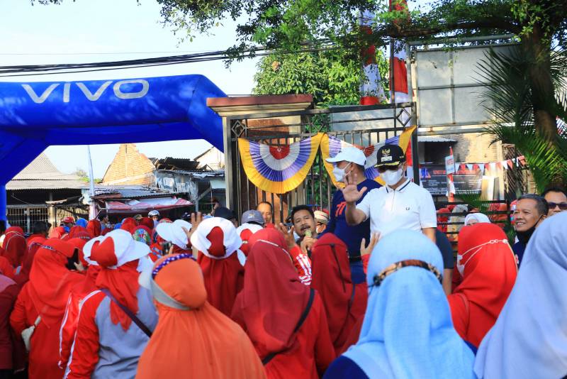 Masyarakat dari berbagai kelompok tampak berbaur dan bersemangat untuk turut serta dalam kegiatan yang sengaja digelar untuk menyambut peringatan kemerdekaan RI pada tanggal 17 Agustus mendatang.