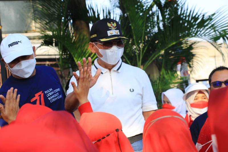 Wakil Wali Kota Tangerang H. Sachrudin berkesempatan untuk melepas rombongan peserta gerak jalan yang diikuti mulai dari anak - anak hingga dewasa yang tinggal di wilayah Kecamatan Pinang.