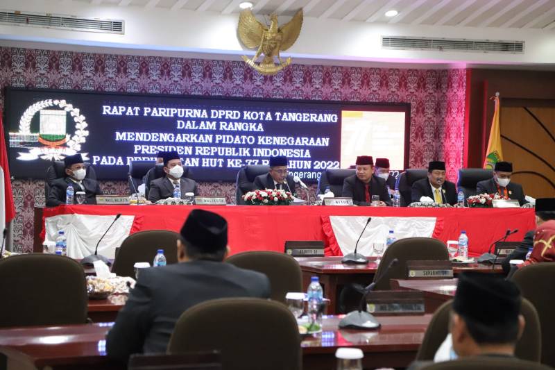 Dewan Perwakilan Rakyat Daerah (DPRD) Kota Tangerang menggelar Rapat Paripurna mendengarkan Pidato Kenegaraan Presiden Republik Indonesia, pada Peringatan HUT ke-77 Republik Indonesia, yang berlangsung di Ruang Paripurna Puspem Kota Tangerang, Selasa (16/8/22).