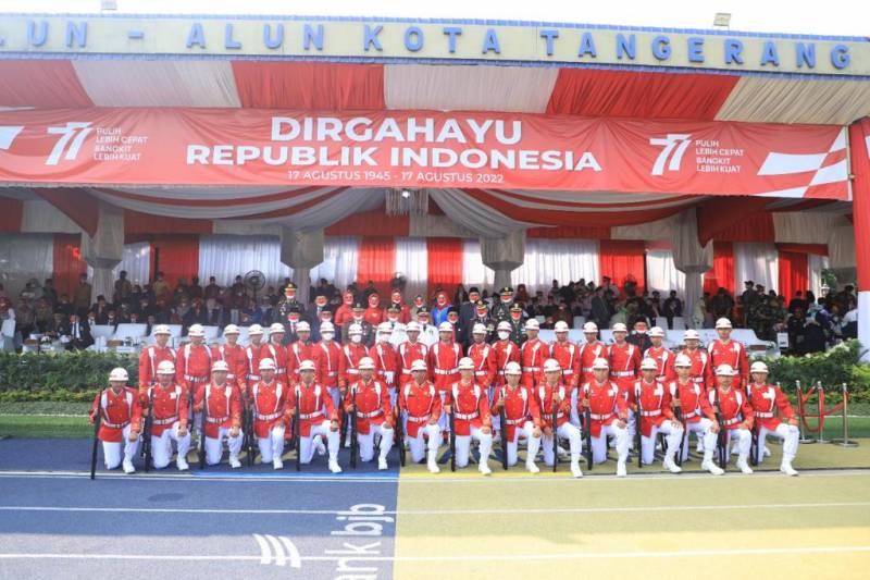 Upacara HUT Republik Indonesia ke-77 tahun, yang diperingati pada Rabu, (17/8/22), di Kota Tangerang berlangsung penuh khidmat dan meriah. Upacara pengibaran bendera yang berlangsung di Alun-Alun Kota Tangerang dimulai pukul 07.00 WIB, dengan dipimpin Inspektur Upacara, Wali Kota Tangerang, Arief R Wismansyah dan Komandan Upacara Mayor Infanteri Reza Gita Armena Yuniawan.