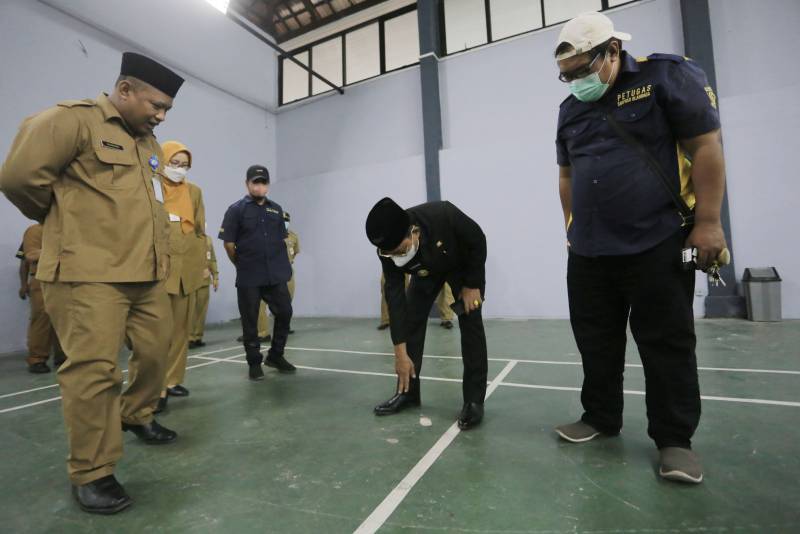 Lokasi pertama yang dikunjungi wakil wali kota beserta rombongan adalah GOR Dimyati yang nantinya akan menjadi lokasi pertandingan Basket.