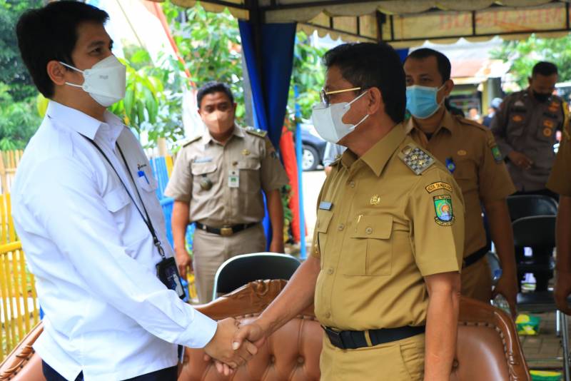 Wakil Wali Kota Tangerang H. Sachrudin didampingin Camat Neglasari Tb Sani Soniawan menerima secara langsung Pemberian Program CSR Tahun 2022 dari PT. Pertamina Patra Niaga Shafthi bertempat di Kantor Kelurahan Mekarsari, Kecamatan Neglasari, Kota Tangerang, Senin (29/8).