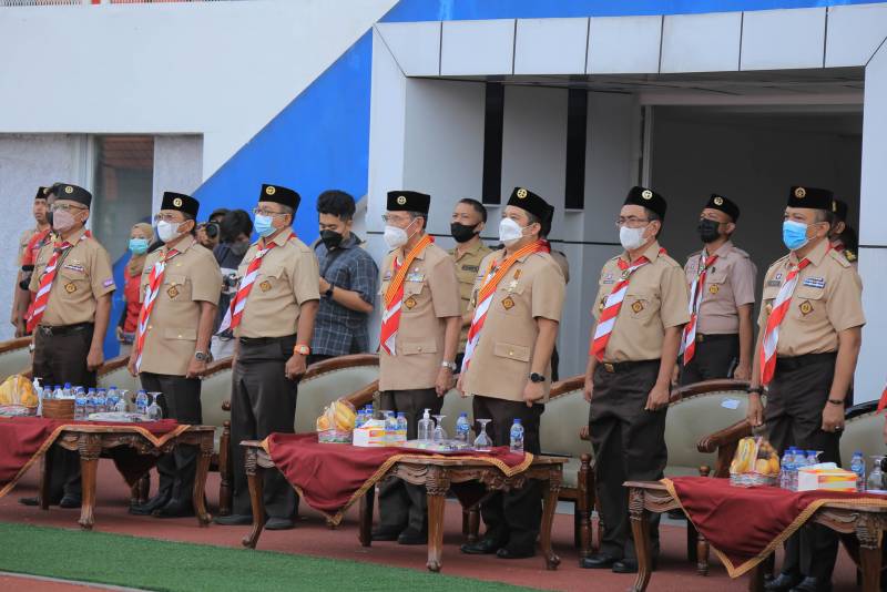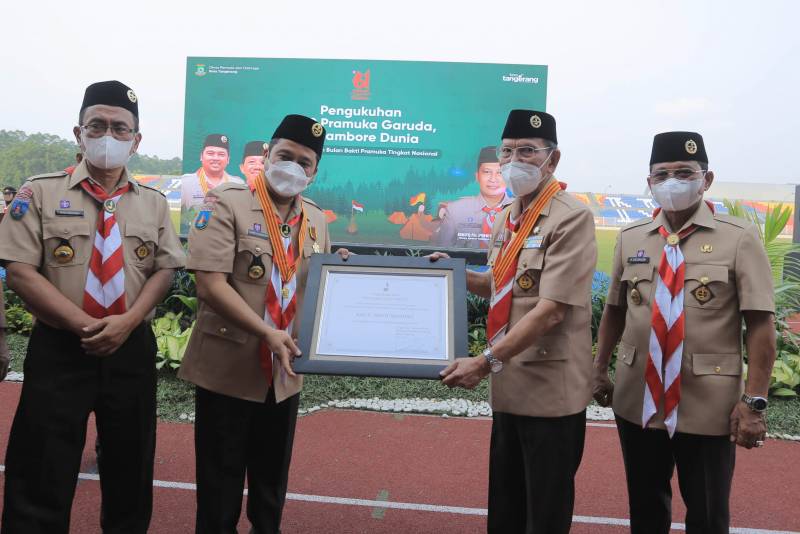 Wali Kota Tangerang H. Arief R. Wismansyah bersama wakilnya H. Sachrudin kukuhkan 1000 Pramuka Garuda Kwarcab Kota Tangerang serta 41 peserta Jambore Dunia Delegasi Kota Tangerang Tahun 2023 dalam acara penutupan Bulan Bakti Pramuka Nasional Tahun 2022 yang diselenggarakan di Stadion Benteng Reborn, Selasa (30/8/22).