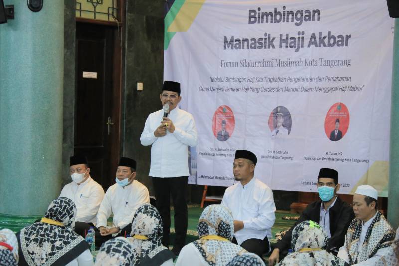 Wakil Wali Kota Tangerang H. Sachrudin membuka kegiatan Manasik Akbar tingkat Kota Tangerang Tahun 1444 Hijriyah yang diselenggarakan oleh Forum Silaturahmi Muslimah Kota Tangerang bertempat di Masjid Raya Al-Azhom.