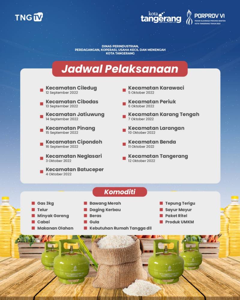 “Bahan pokok seperti telur, minyak goreng, cabai, bawang merah, daging kerbau, beras, gula, tepung terigu pastinya ada, dengan harga yang lebih murah. Jadi, jangan lewatkan Bazar Murah Kota Tangerang di masing-masing kecamatan kalian. Program ini, diutamakan untuk warga Kota Tangerang,” ungkap Suli, Jumat (9/9/22).