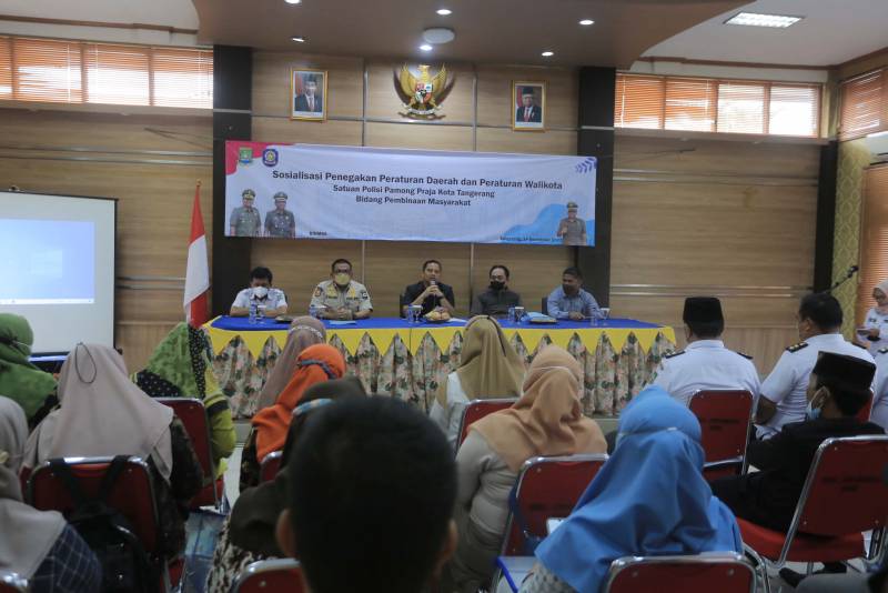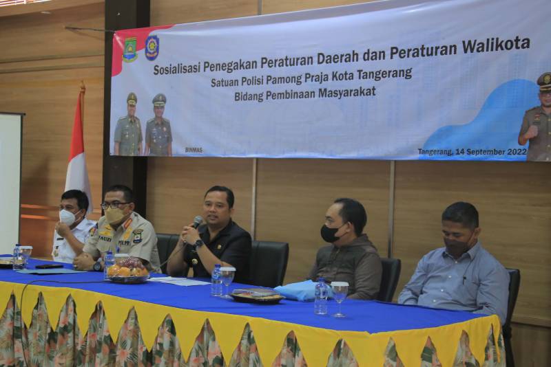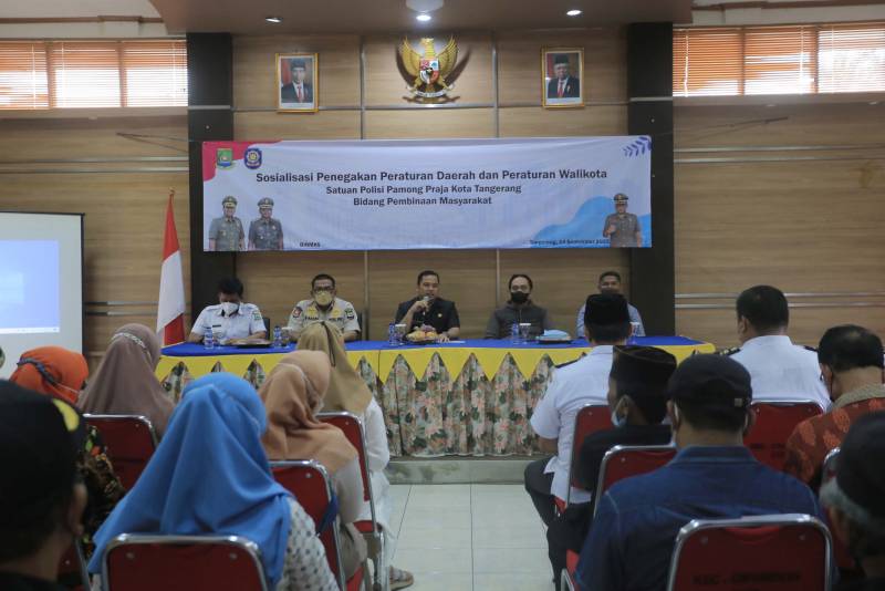 Wali Kota Tangerang H. Arief R. Wismansyah membuka secara langsung sosialisasi Penegakan Peraturan Daerah dan Peraturan Walikota yang diinisiasi oleh SatpolPP Kota Tangerang bidang Pembinaan Kemasyarakatan, bertempat di Aula Kecamatan Cipondoh, Rabu (14/9/2022)