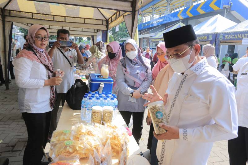 Wakil Wali Kota Tangerang H. Sachrudin yang datang meninjau langsung bazar murah tersebut ikut nimbrung ditengah-tengah ibu-ibu berbelanja.