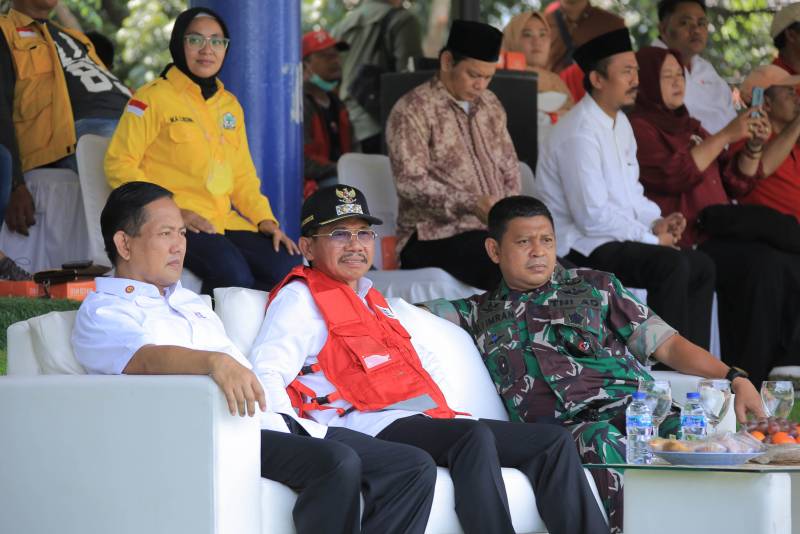 Wakil Wali Kota Tangerang, H.Sachrudin didampingi Sekretaris Daerah, Herman Suwarman hadir dalam Perayaan Hari Ulang Tahun Palang Merah Indonesia yang Ke-77 bertempat di Alun-Alun Ahmad Yani Kota Tangerang, Sabtu (17/08/2022).
