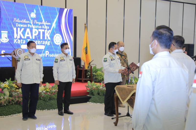 Wali Kota Tangerang H. Arief R Wismansyah didampingi Wakil Wali Kota Tangerang H.Sachrudin menghadiri acara Pelantikan Dewan Pengurus Kota Ikatan Keluarga Alumni Pendidikan Tinggi Kepamongprajaan (IKAPTK) Kota Tangerang bertempat di Gedung Pertemuan Tangerang Convention Center (TCC) Kota Tangerang, Sabtu (17/08/2022).