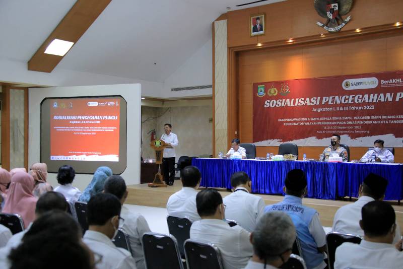 Dalam kegiatan yang diselenggarakan oleh Inspektorat Kota Tangerang ini dihadiri oleh para peserta dari lingkungan Dinas Pendidikan Kota Tangerang serta narasumber yakni Waka Polres Metro Tangerang Kota AKBP Bambang Yudhantara Salamun yang juga sebagai Ketua Unit Pelaksana Saber Pungli Kota Tangerang.