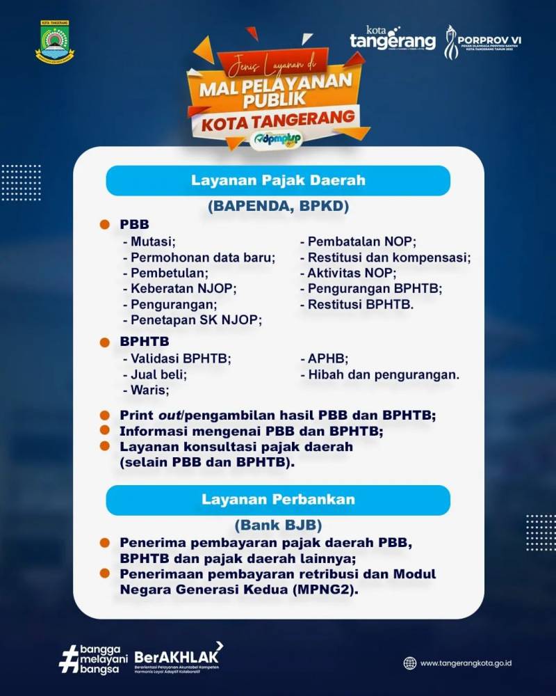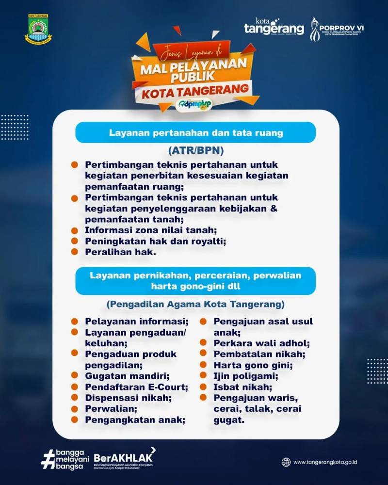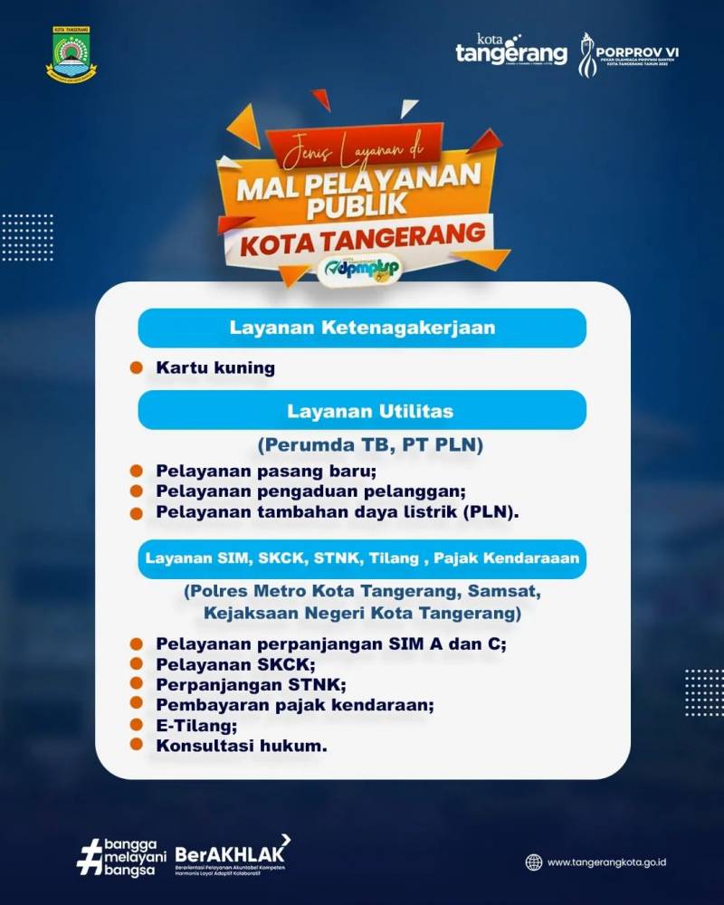 Yuk akses segala pelayanan di Kota Tangerang, mulai dari urus KTP, perpanjang SIM, hingga urusan harta gono-gini dan berbagai layanan lainnya di Mal Pelayanan Publik Kota Tangerang!