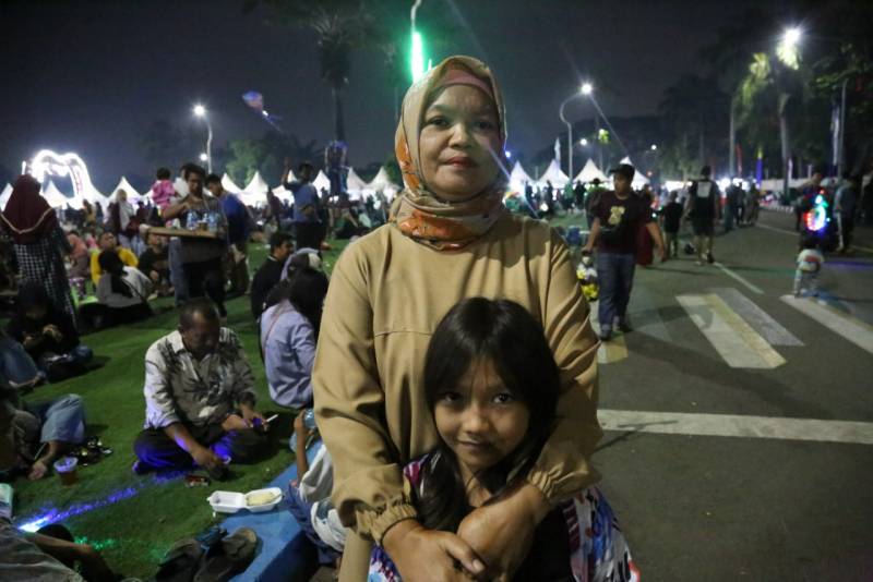 Salah satunya Titi, warga Cipondoh yang datang ke Festival Al-Azhom ini beserta anaknya. Dia mengaku cukup senang bisa membawa keluarga di akhir pekan kesini.
