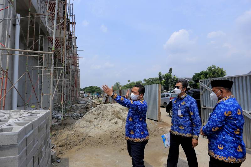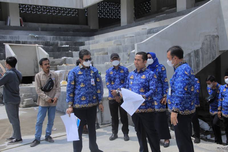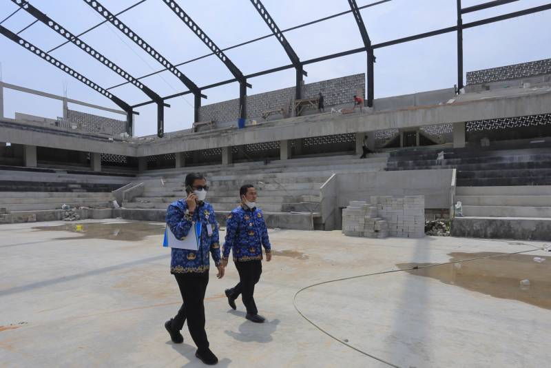Wali Kota Tangerang H. Arief R. Wismansyah meninjau pembangunan salah satu Gedung Olahraga (GOR) yang akan menjadi venue cabang olahraga bola voli indoor dan outdoor.