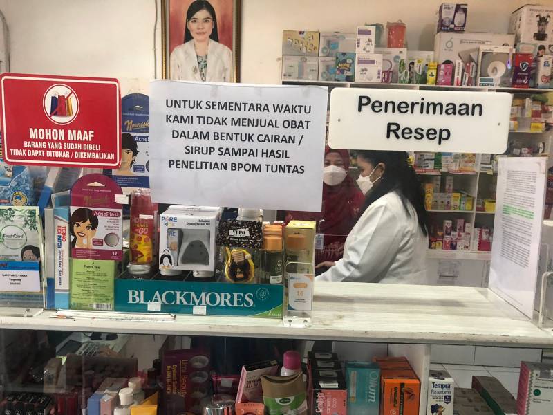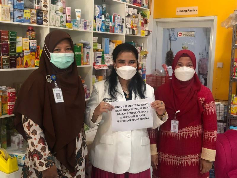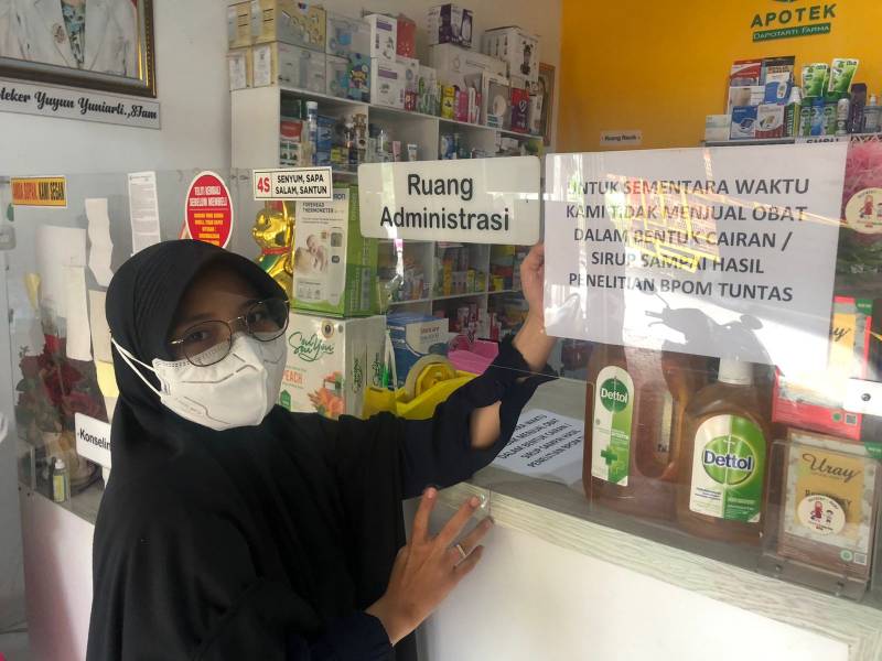 Hasilnya, Apotek Dapotarti Farma telah menempelkan imbauan kepada para pembeli jika penjualan obat sirup dihentikan. Hingga hasil penelitian dari Badan Pengawas Obat dan Makanan (BPOM) selesai.