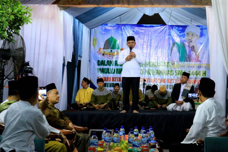 Dalam sambutannya, Wakil Wali Kota mengajak untuk menjadikan peringatan Maulid Nabi ini menjadi momentum strategis membangun kesadaran kita untuk senantiasa menjadikan Nabi Muhammad SAW sebagai contoh dan suri teladan yang baik bagi kehidupan kita sehari- hari.