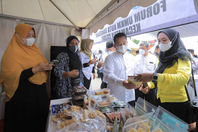 Wali Kota Tangerang H. Arief R. Wismansyah berkesempatan meninjau langsung Bazar UMKM yang diisi dengan berbagai produk unggulan dari 60 UMKM perwakilan 13 kecamatan se-Kota Tangerang, mulai dari produk makanan minuman kemasan, kerajinan hingga konveksi.