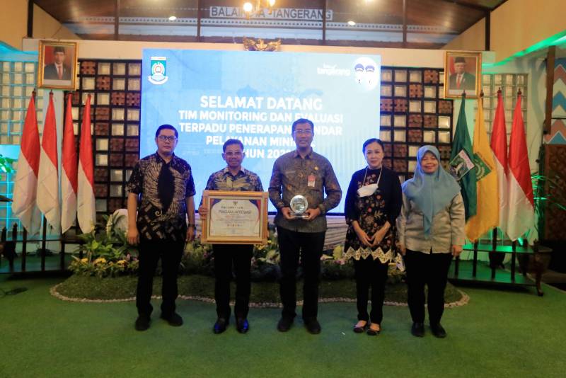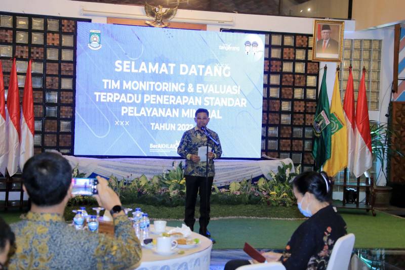 Pemerintah Kota Tangerang menerima kunjungan Tim Monitoring dan Evaluasi (Monev) Terpadu Penerapan Standar Pelayanan Minimal (SPM) Tahun 2022.