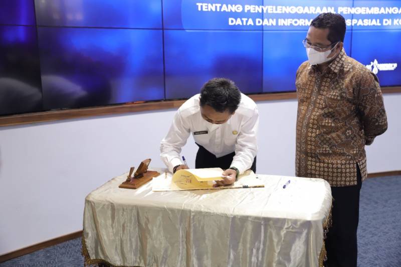 Guna melaksanakan percepatan pengembangan, pemanfaatan data dan informasi geospasial, Pemerintah Kota (Pemkot) Tangerang melaksanakan penandatanganan nota kesepakatan dengan Badan Informasi Geospasial (BIG), pada Kamis (27/10/22) di ruang Tangerang Live Room.
