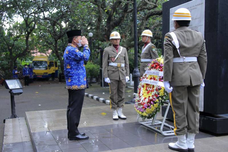Sachrudin menyampaikan Pemerintah Kota Tangerang menggelar upacara ziarah dan tabur bunga untuk mendoakan para Pahlawan yang telah gugur dan menghormati perjuangan para pahlawan.